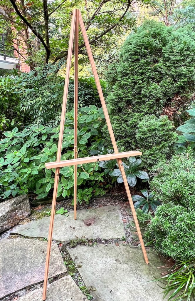 Brown wood easel.