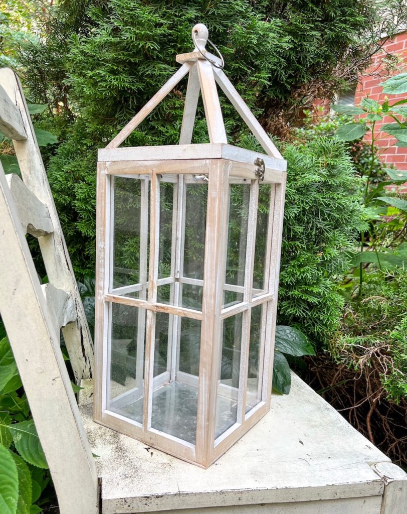 Large wood and glass white rustic lantern.