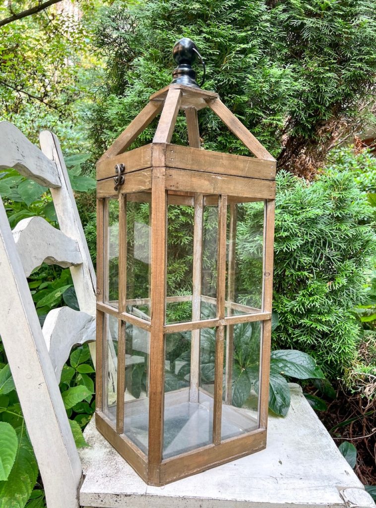 Large wood and glass brown lantern.