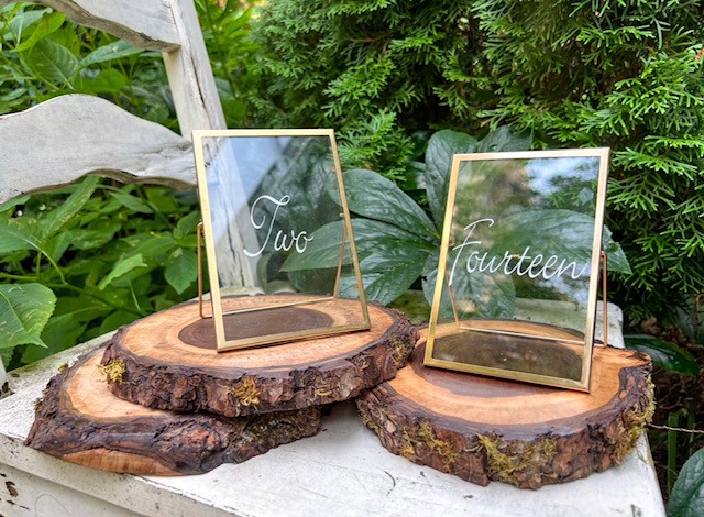 Gold coloured glass table numbers. #1-#14 available.